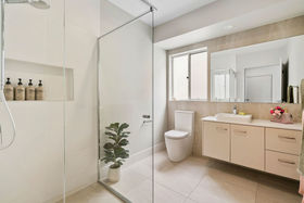 Privately positioned at the rear, the master suite is a true retreat, opening directly to the terrace and enjoying a tranquil garden outlook. A dedicated retreat space, generous walk in robe and refined ensuite with twin vanities elevate the sense of comfort and privacy. The second bedroom is thoughtfully placed at the front of the home and features its own ensuite along with charming garden and terrace views, making it ideal for guests or dual living.