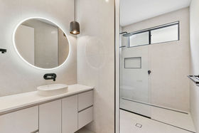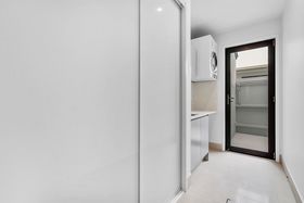 At the heart of the home, the contemporary kitchen is both elegant and highly functional. Finished in timeless neutral tones and complemented by stunning stone benchtops, it features an oversized island and quality European appliances. The adjacent laundry and drying court enhance everyday practicality and keep the utilitarian zones connected.